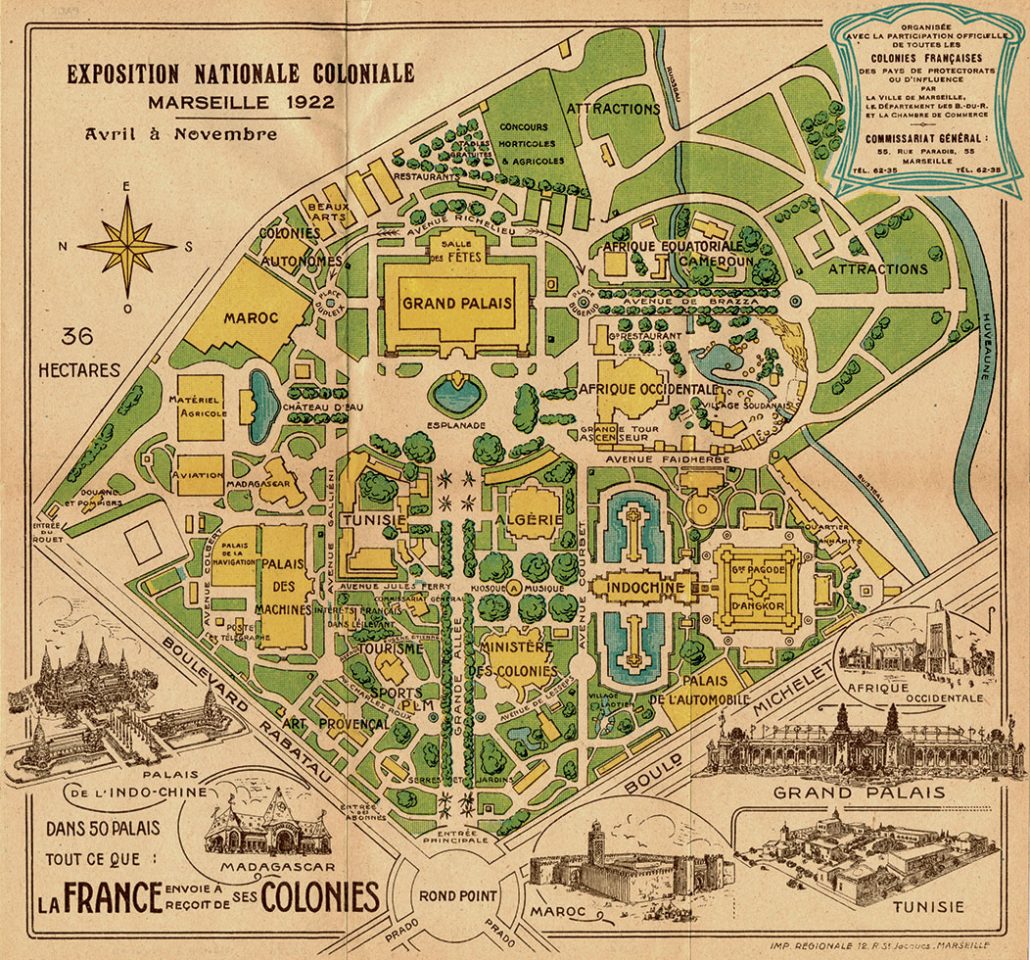 (1) Le palais des colonies autonomes regroupait les expositions de la Martinique, la Guadeloupe, la Guyane française, la Nouvelle-Calédonie, les établissements français d’Océanie, les Nouvelles Hébrides, les établissements de l’Inde française, la Côte française des Somalis, Saint-Pierre-et-Miquelon, la Réunion.